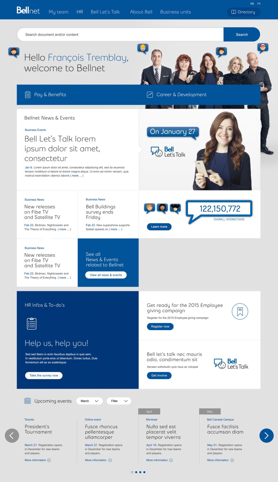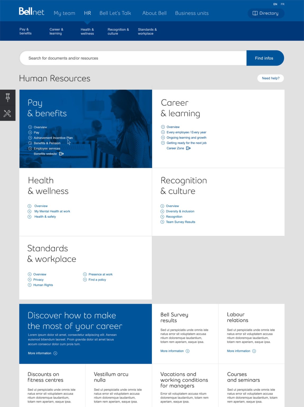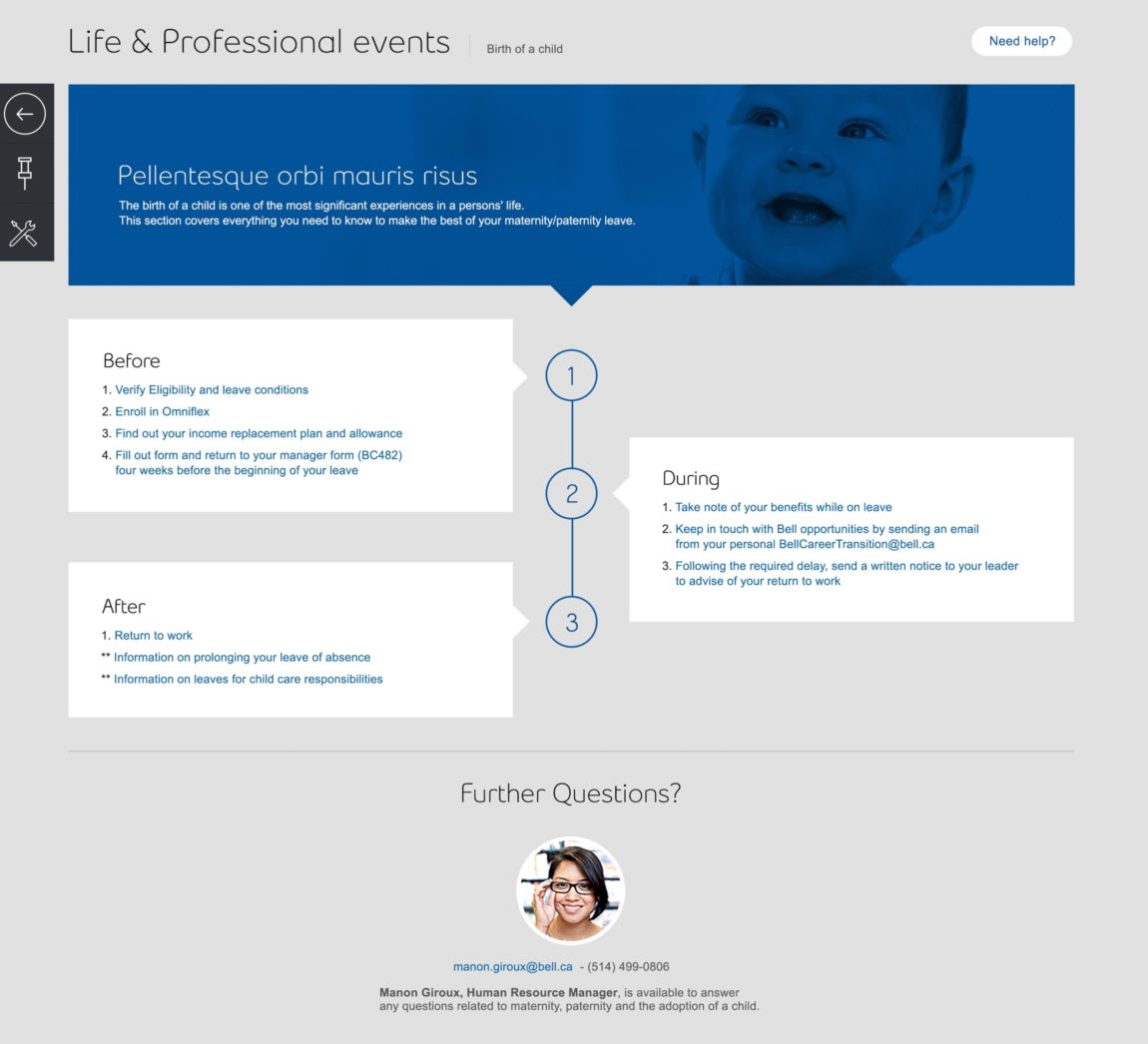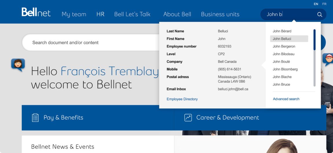 Connecter plus de 50,000 employés à l’information corporative pertinente est tout un défi. Nous avons travaillé en étroite collaboration avec les équipes internes de Bell afin de pouvoir livrer une solution adéquate basée sur de la recherche utilisateurs.