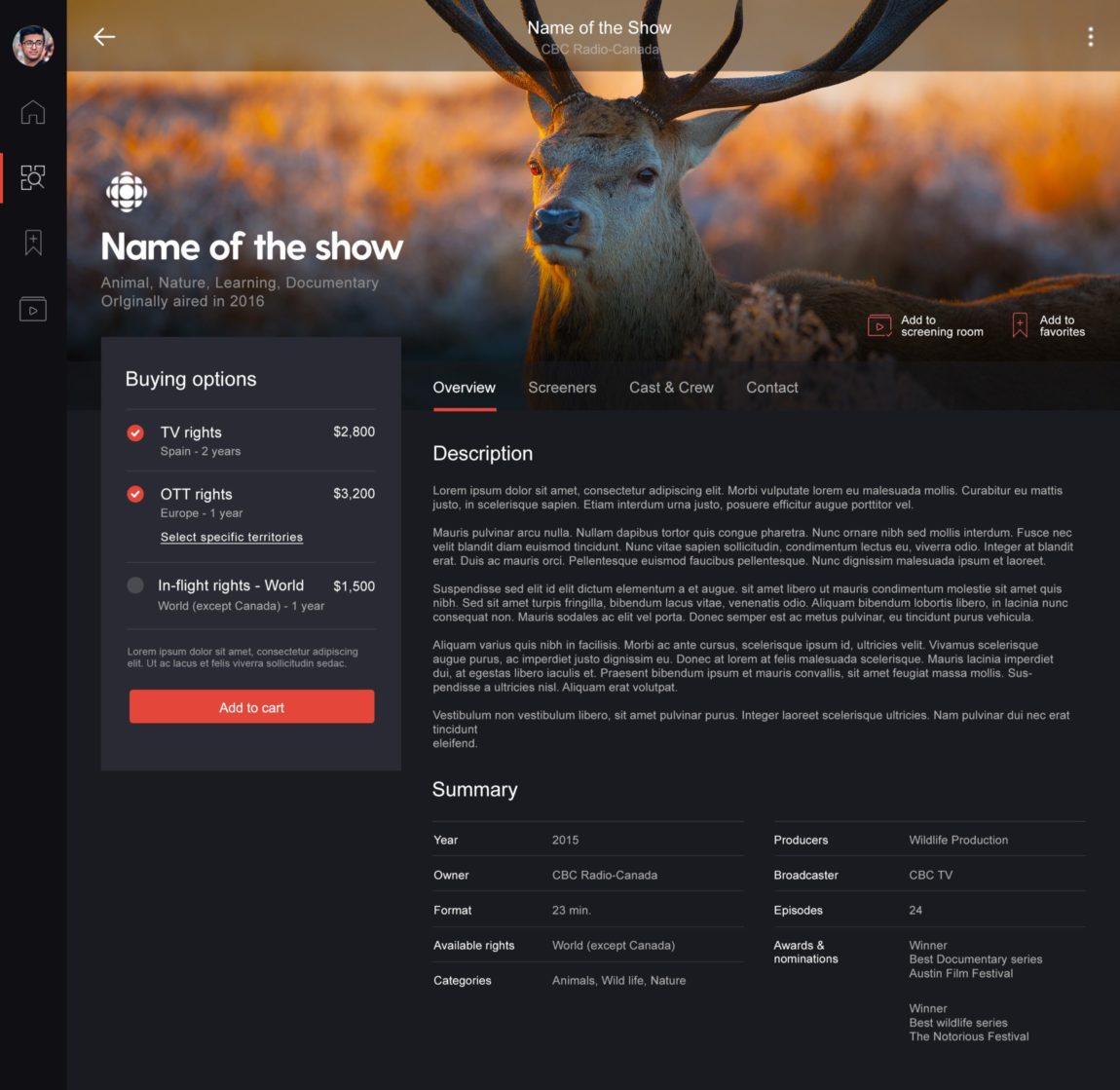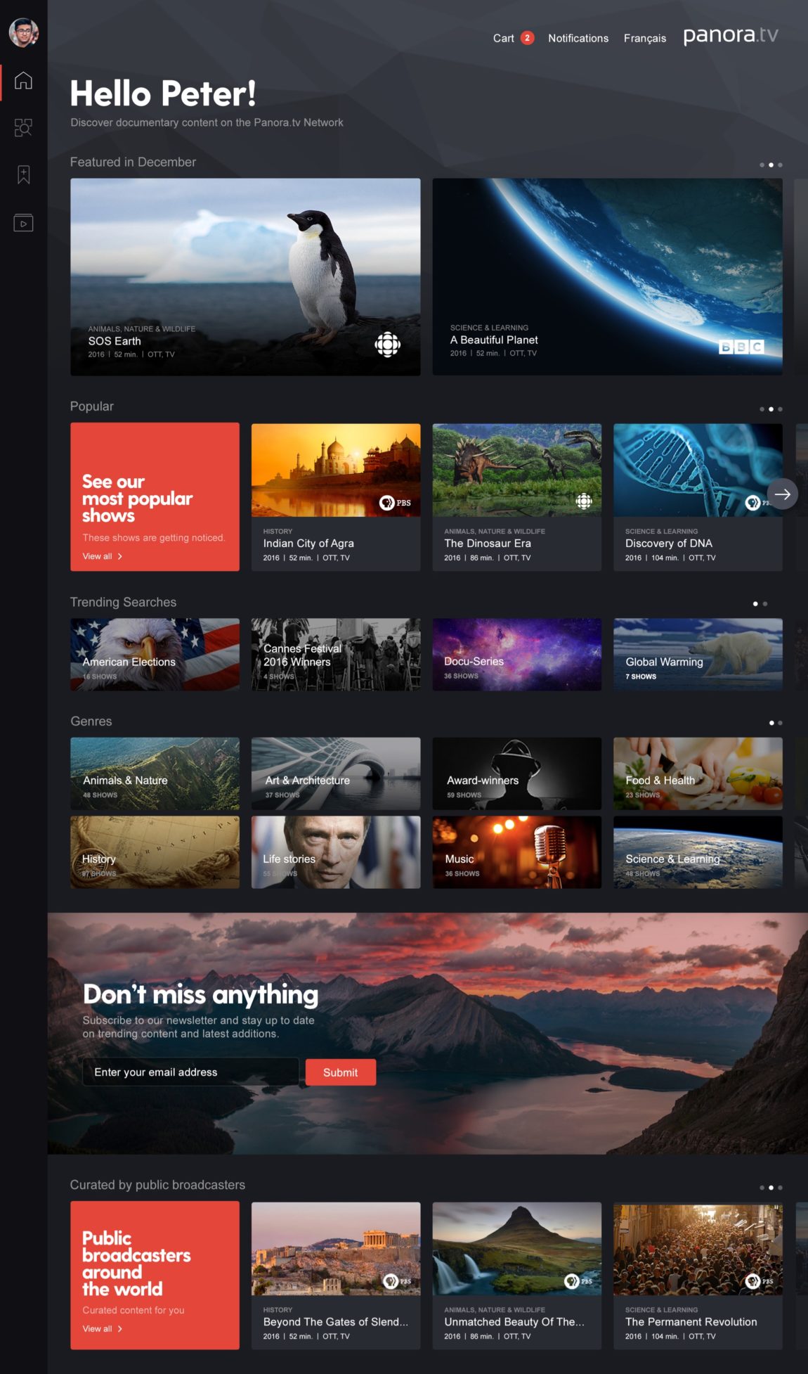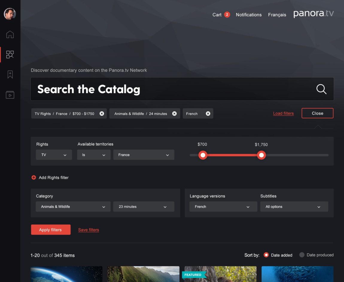 L’équipe de la distribution de Radio-Canada a confié à Blache Yong & Co. le mandat de conception de l’expérience globale pour la plateforme d’acquisition de documentaires en ligne Panora.tv. De la stratégie produit à l’expérience utilisateur, notre équipe a créé un outil qui facilite la découverte de contenu et qui simplifie l’acquisition sur le marché international.