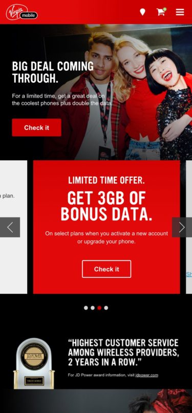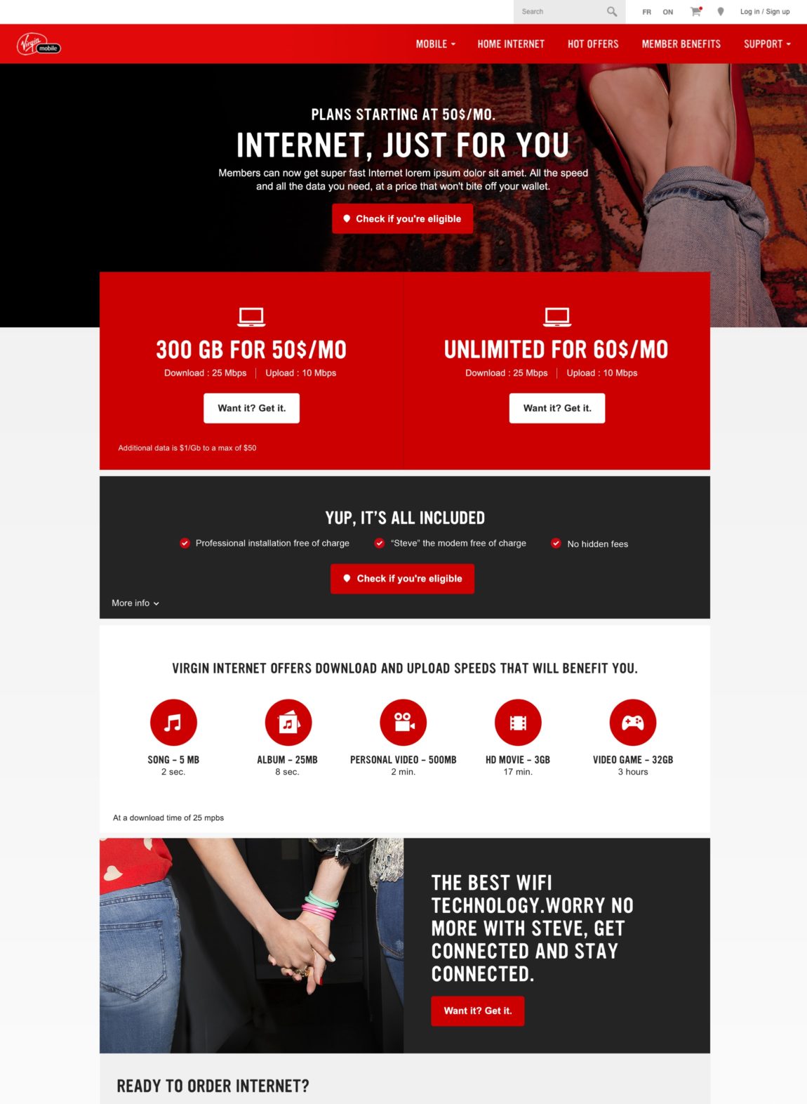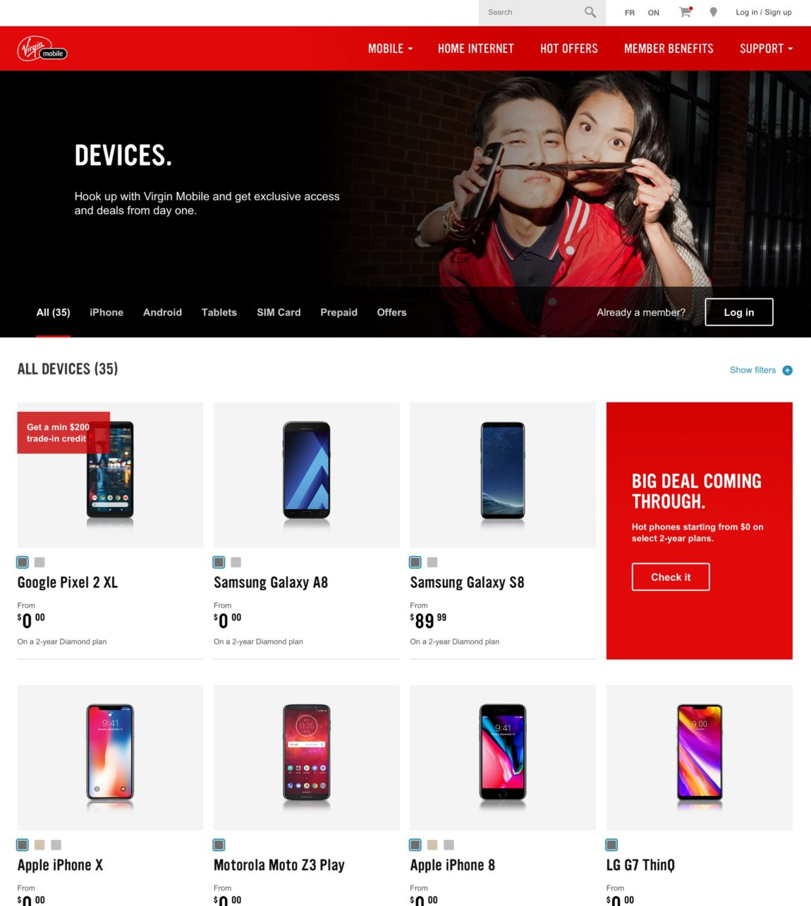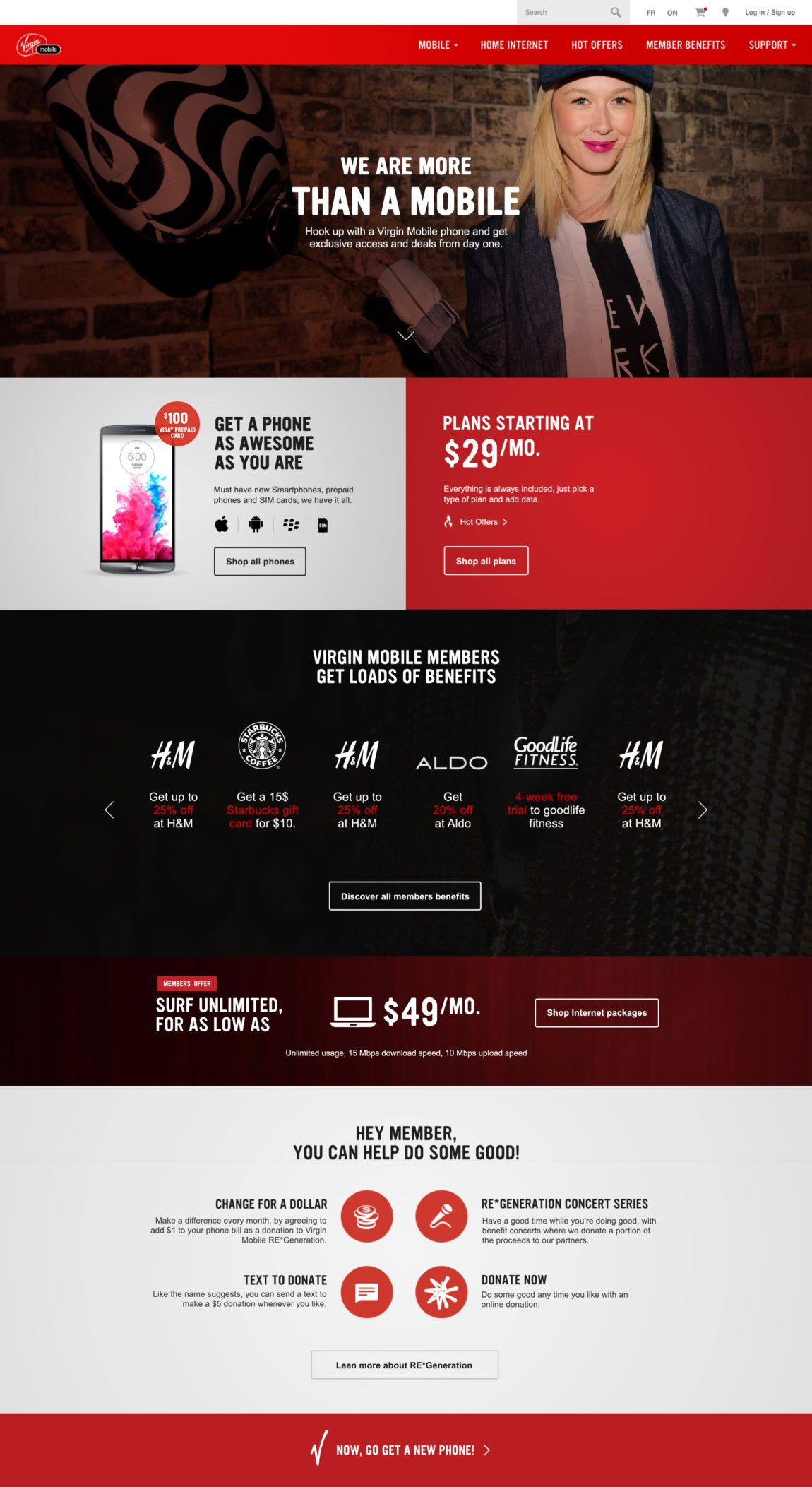 Visitez virginmobile.caTout en renforçant l’identité de marque de Virgin, notre nouvelle structure de navigation offre une expérience client à la fois simple et robuste.